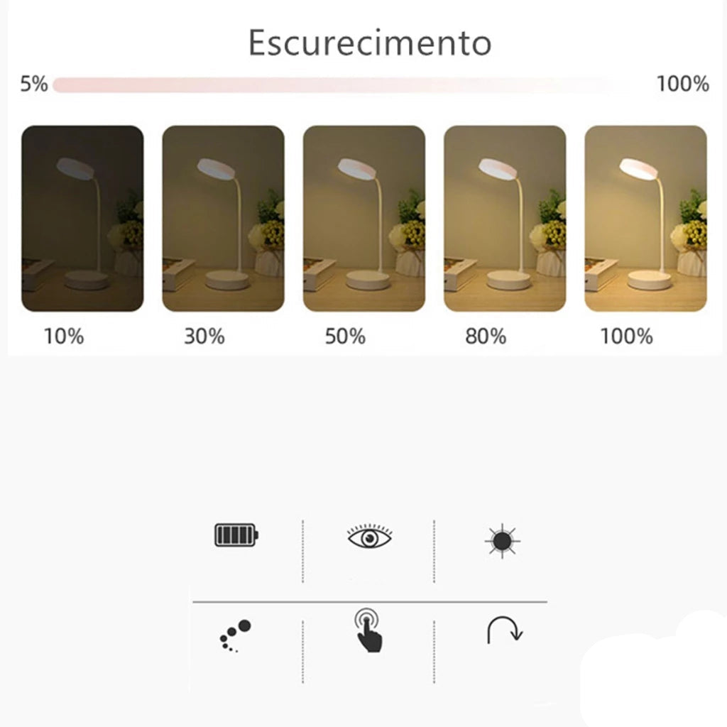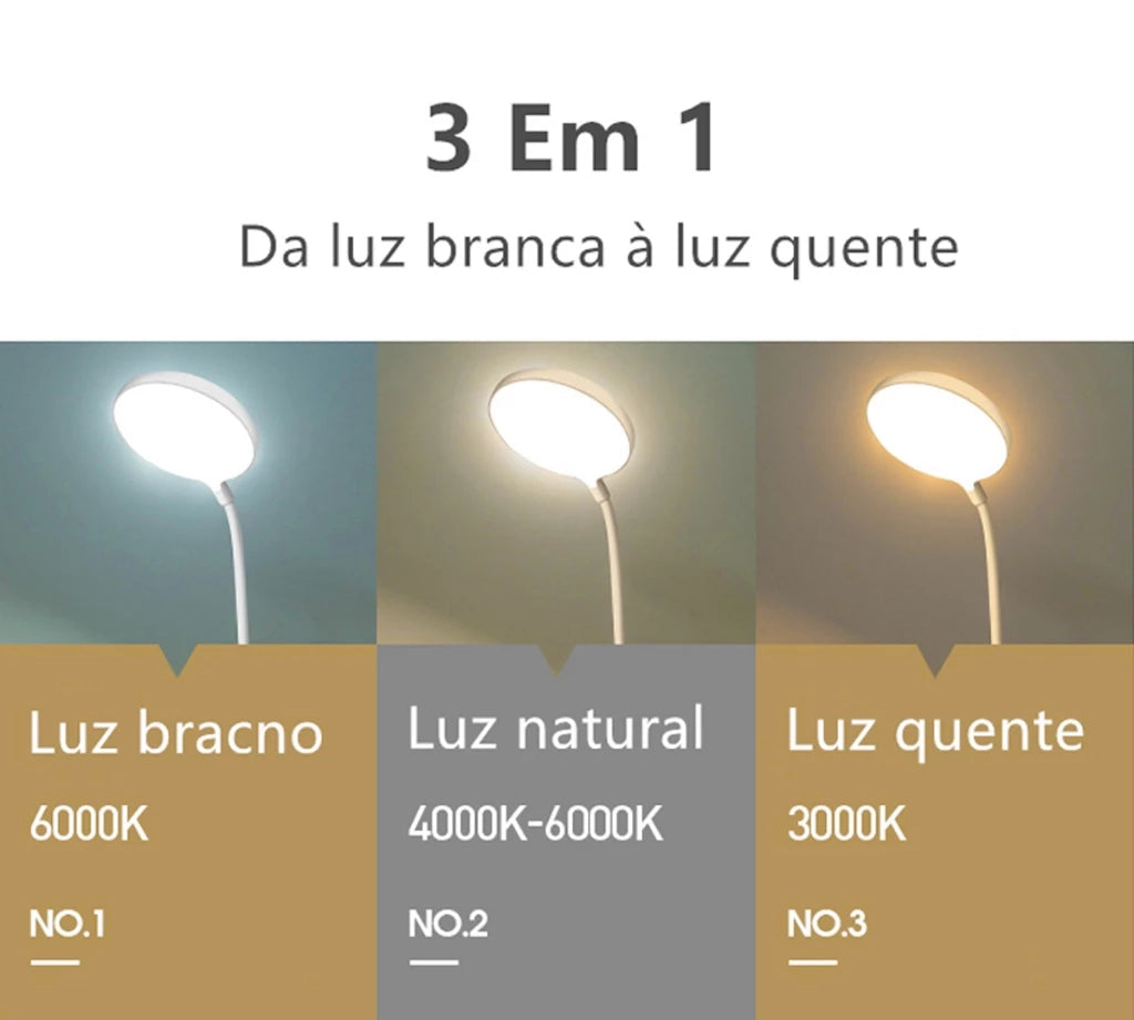 A Luminária Abajur de Mesa LED foi projetada para oferecer conforto visual e praticidade total. Com tecnologia touch, bateria recarregável e haste flexível, ela é perfeita para estudos, leitura, trabalho ou uso decorativo, proporcionando uma luz suave, uniforme e ajustável