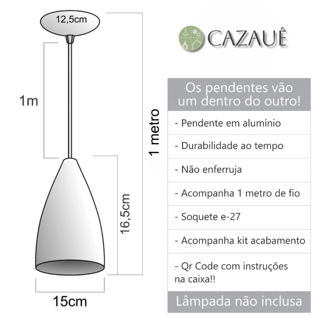 Produzidos em metal resistente com pintura eletrostática texturizada, os pendentes oferecem qualidade superior e longa vida útil. Os detalhes em bronze proporcionam contraste elegante, enquanto o cabo ajustável permite adaptar a altura conforme o ambiente e a necessidade.