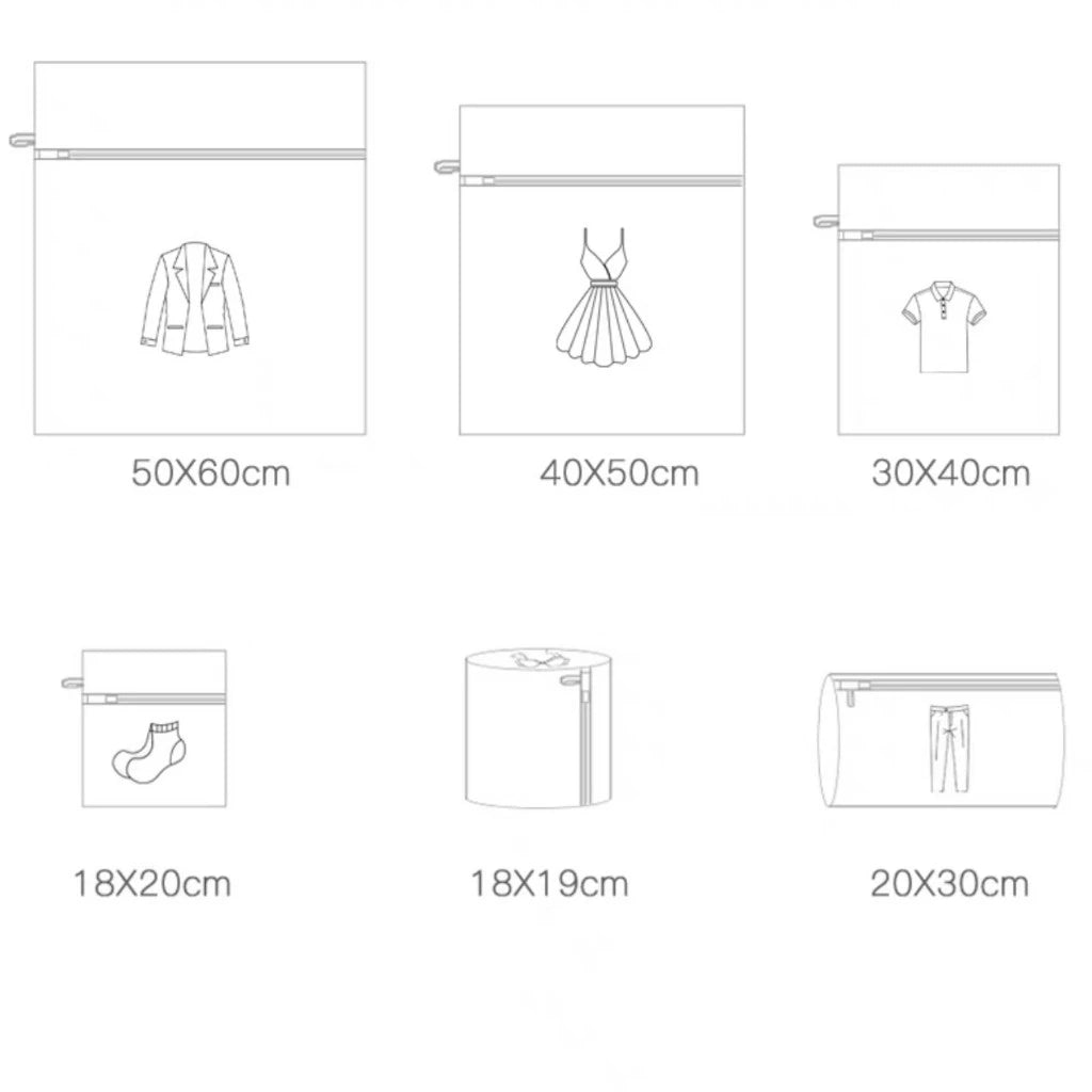 O Kit de 6 Unidades vem em diferentes tamanhos, perfeito para separar e lavar lingeries, roupas íntimas, camisetas, meias e roupas de bebê. Além disso, os sacos podem ser usados também para organizar malas de viagem ou guardar roupas delicadas no armário.