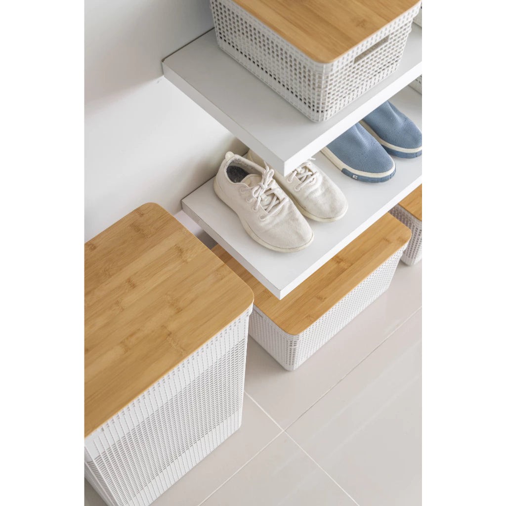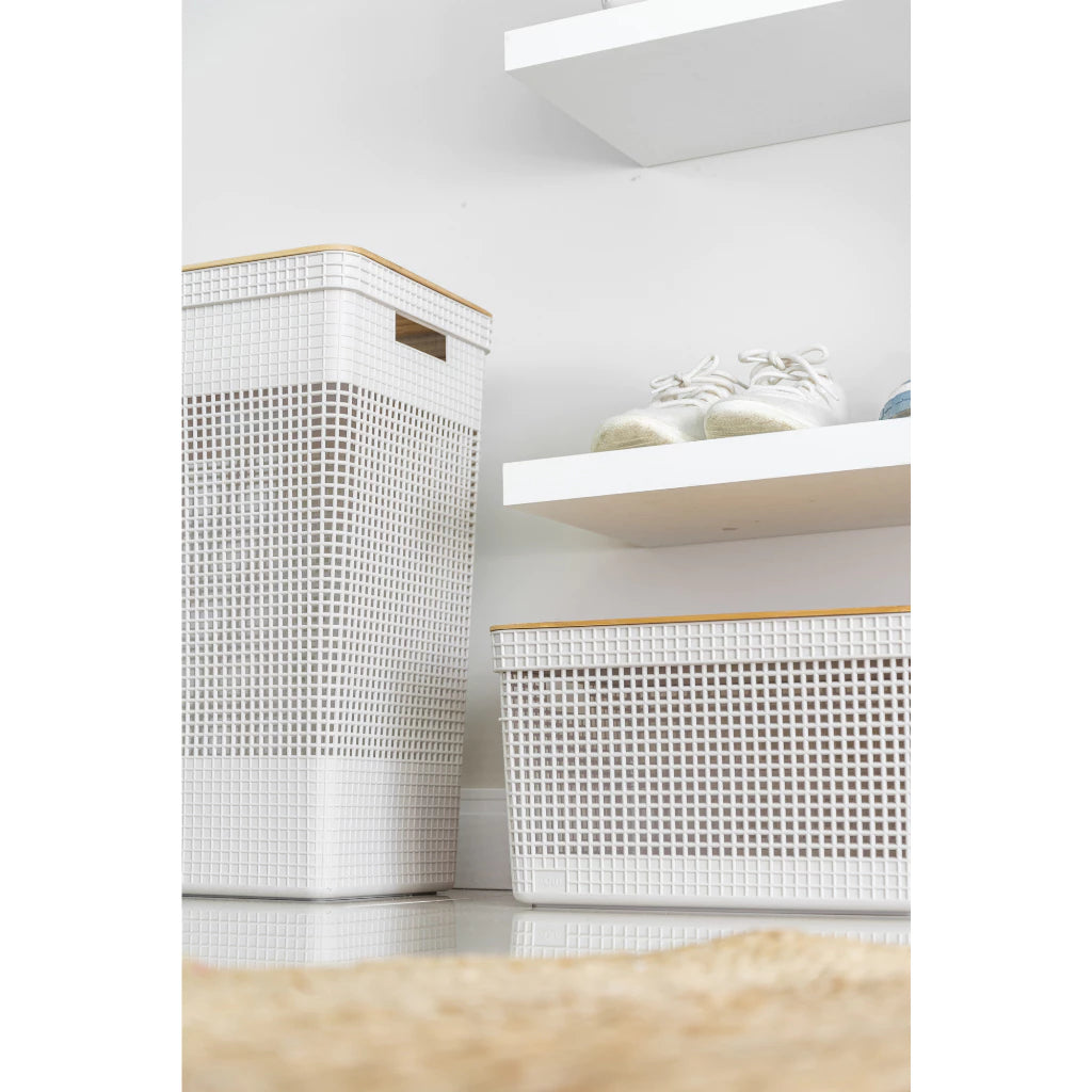 Perfeito para lavanderias, banheiros, closets e quartos, o Cesto Grid com Tampa de Bambu une beleza e praticidade. Seu design neutro combina com qualquer decoração, trazendo harmonia, funcionalidade e elegância natural.