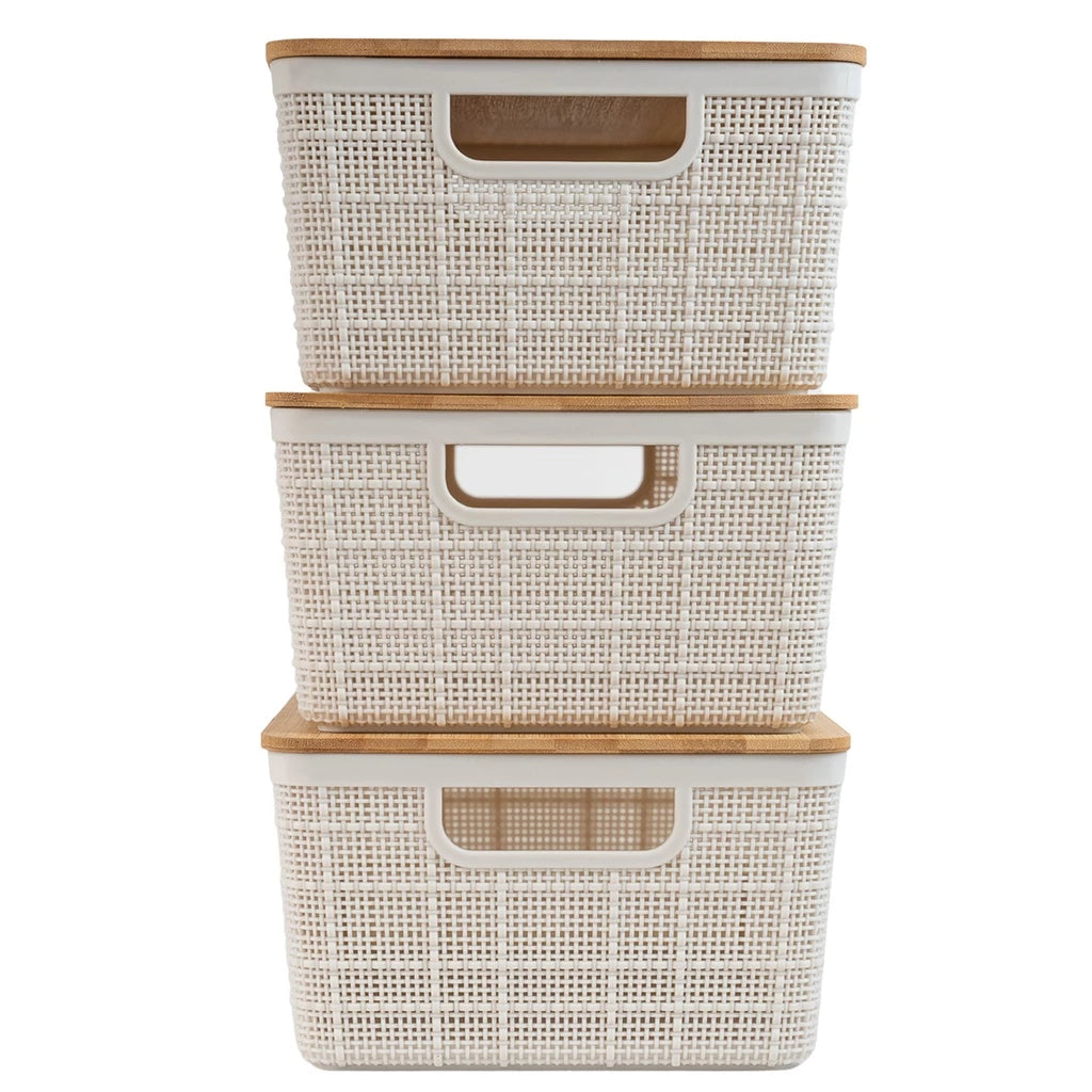 Kit com 3 Caixas Organizadoras 4L com Tampa de Bambu – Multiuso, Elegante e Funcional