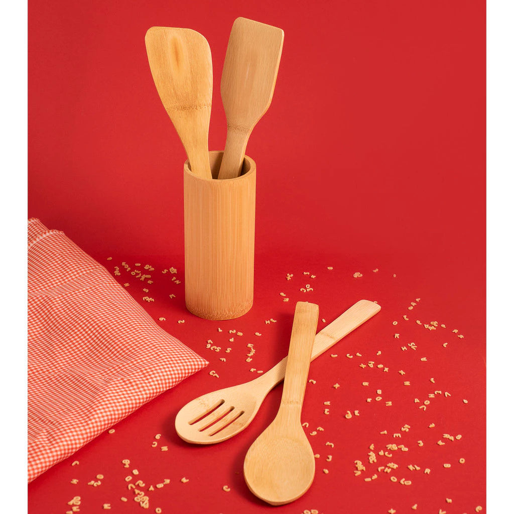 Além de funcional, o Kit de Utensílios de Bambu é decorativo e sustentável, perfeito para quem busca organização com estética natural. Uma excelente opção de presente ou complemento para o seu cantinho gourmet