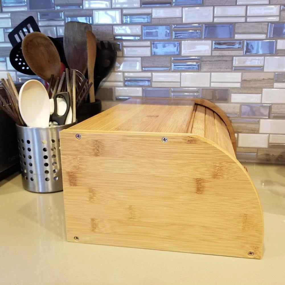 Porta Pão de Bambu com Tampa Retrátil – Organização Natural e Conservação Inteligente