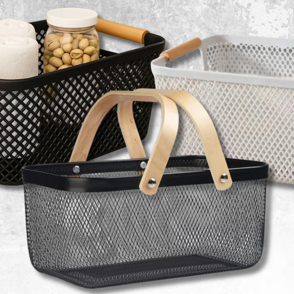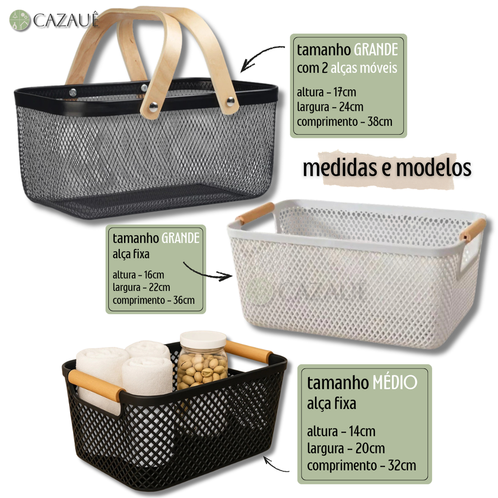 Cesto Organizador Decorativo Multiuso – Design Sofisticado com Alça de Bambu