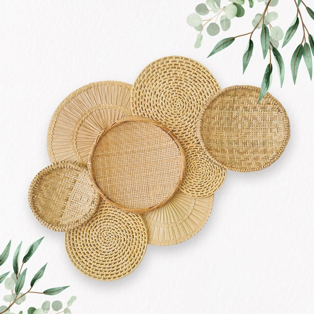 Decoração de Parede Boho – Composição com Cestos de Palha Artesanais
